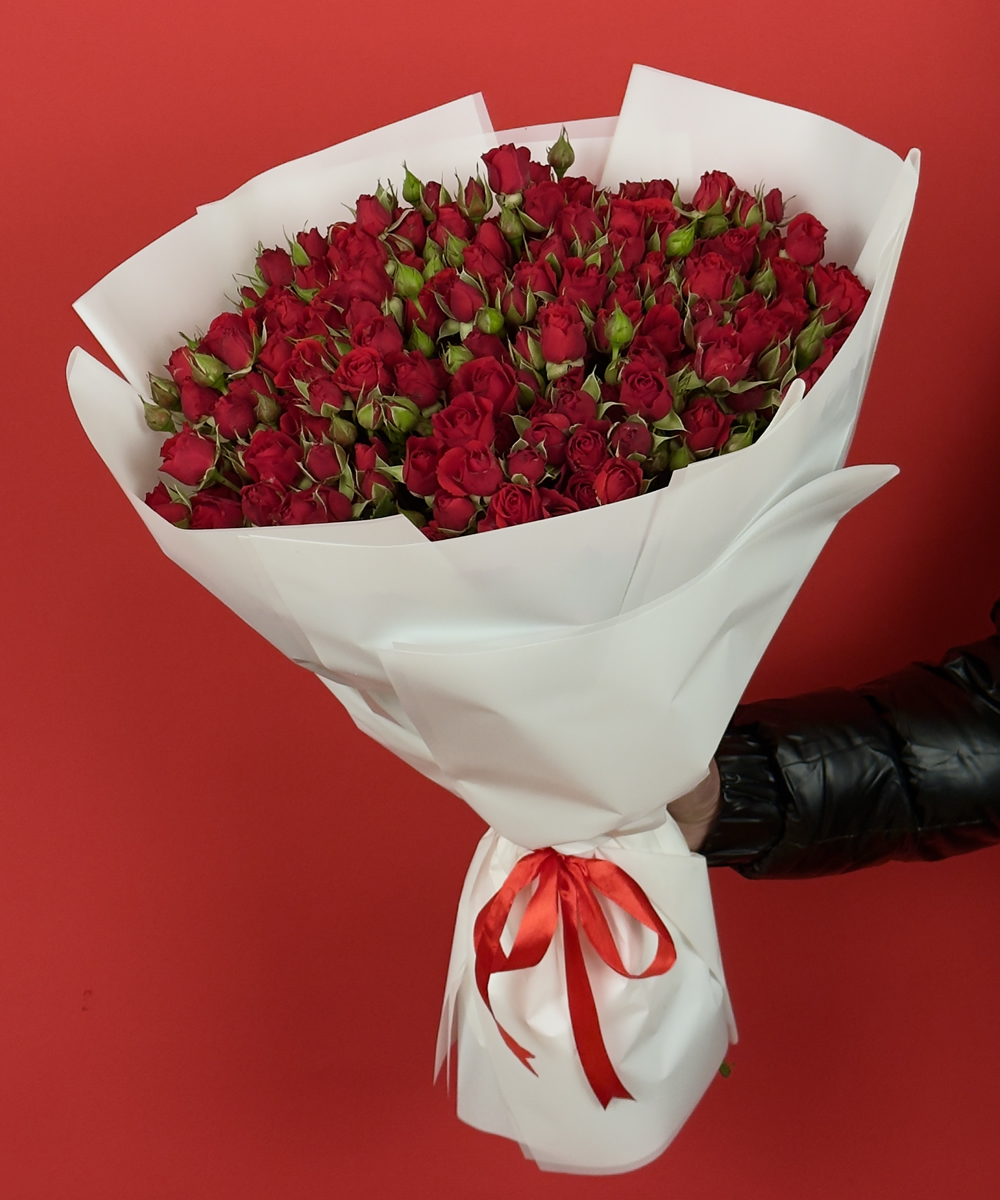 A beautiful bouquet of 50 red baby roses arranged in a modern, full and romantic style. Fresh, elegant and perfect for expressing love this Valentine’s Day, with same-day delivery available across Lebanon.